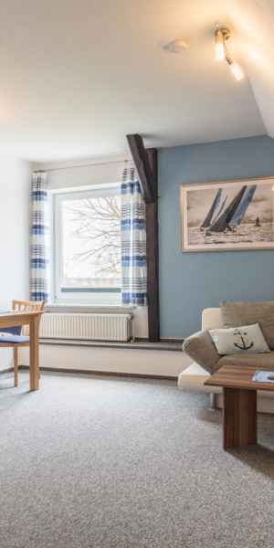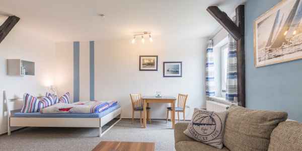 - Wohn- Schlafraum im maritimen Flair, mit Blick in den Garten