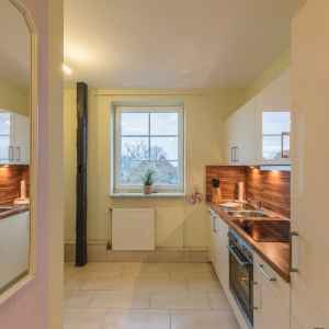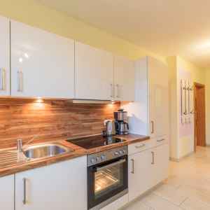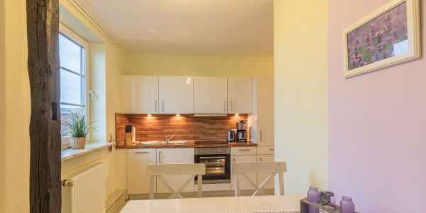 - Küche mit Essecke, umfangreiche Küchenausstattung mit Ceran-Kochfeld, Backofen, Kühlschrank mit Gefrierfach, Kaffeemaschine, Wasserkocher, Geschirrspüler, Toaster, u.s.w.